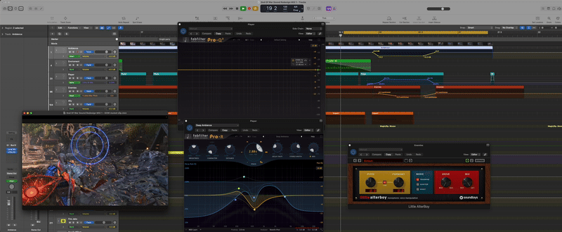 What really made my ambiences stand out, was the use of automation panning with the binaural panner, which allowed me to sculpt and wrap sounds such as the waterfall in the background around the player, depending on his direction, creating a better sense of immersion, reflecting the movement visually.