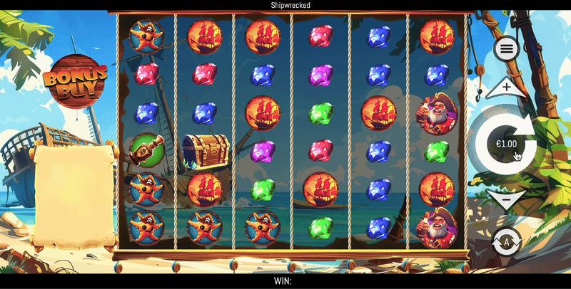 Shipwrecked is a pirate themed 6x6 cluster paying slot, with a bonus feature that offers a progressional element that increases multipliers and cluster wilds.
